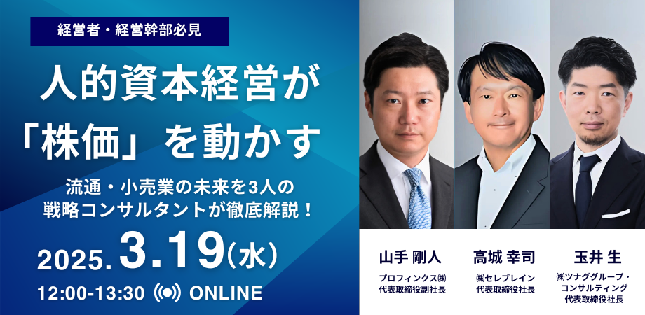 今回は、「流通業・小売業」という業界の特異性を鑑みた上で、今後どういった点に注目しどんな戦略を描いていく必要があるかを、3名の戦略コンサルタント(流通アナリスト・人事コンサルタント・採用コンサルタント)が徹底対談いたします。