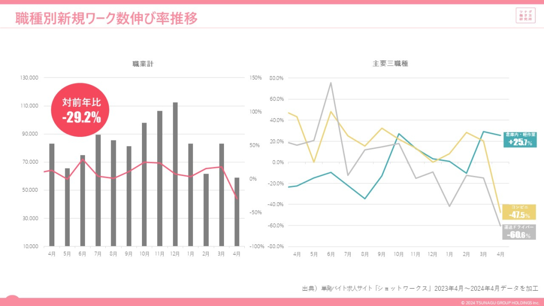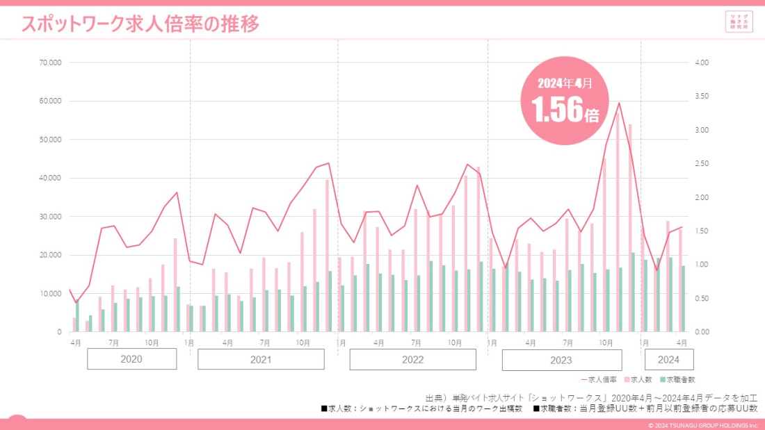 単発バイト求人サイト「ショットワークス」2020年4月~2024年4月データ