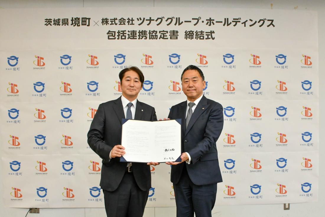 株式会社ツナググループ・ホールディングス(本社:東京都中央区、代表取締役社長:米田光宏、以下ツナググループ)は、茨城県境町と包括連携協定を結び、本日締結式を行いました。