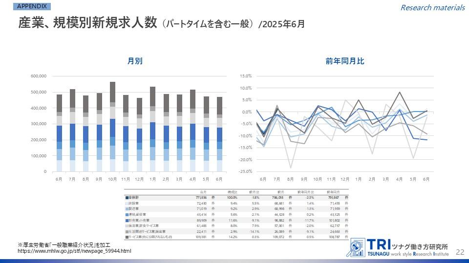 株式会社ツナググループ・ホールディングス(本社:東京都中央区、代表取締役社長:米田 光宏)を母体とする、多様な働き方の調査研究機関「ツナグ働き方研究所(拠点:東京都港区、所長:大野 博司)」は、官公庁などが発表する労働市場関連のデータをキュレーションしつつ、分かりやすくまとめた「労働市場データレポート」を毎月発表しています。今回は8月上旬に発表された最新データをもとに2025年6月度のレポートについて、とりまとめましたのでご報告いたします。