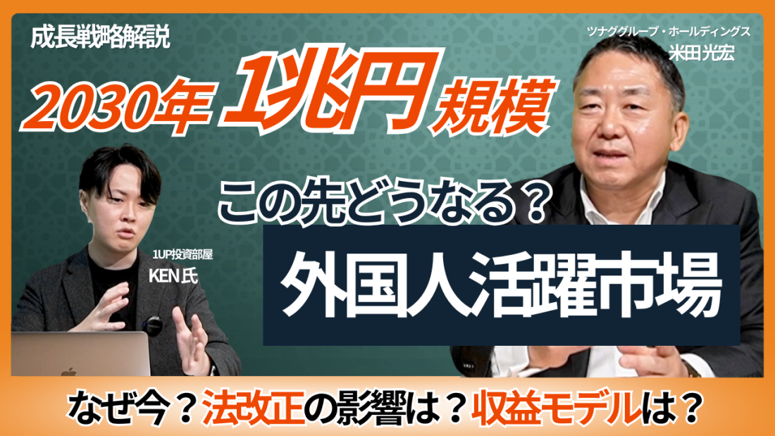 株式会社ツナググループ・ホールディングス(本社:東京都中央区、代表取締役兼執行役員社長:米田 光宏、以下「当社」) は、当社公式 YouTube チャンネルにて、投資家の皆様にご理解を深めていただきたく、IR動画『2030年市場規模1兆円、成長戦略「外国人活躍」とは?』を公開しました。