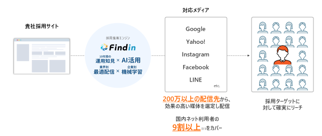 ※1 「Findin」で活用している主要広告媒体の公式公開データをもとに、当社にて配信先のリーチを集計・算出